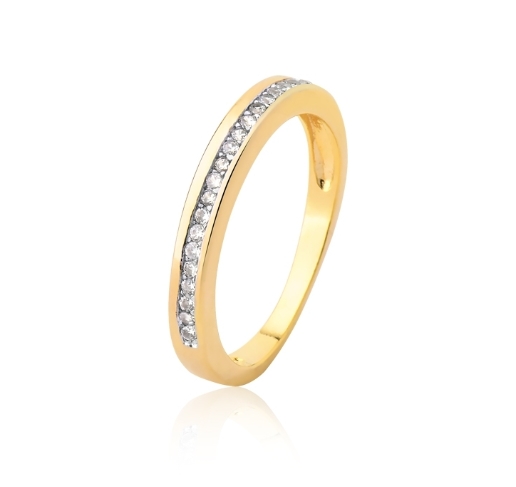 Anel Folheado a Ouro Zircônia Meia Aliança 21