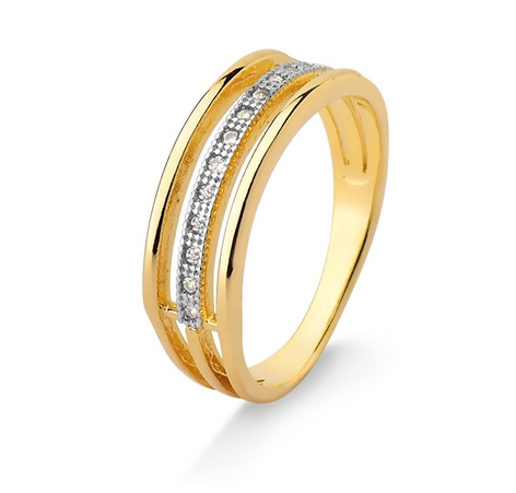 Anel Folheado a Ouro 3 Elos Zircônia - N12